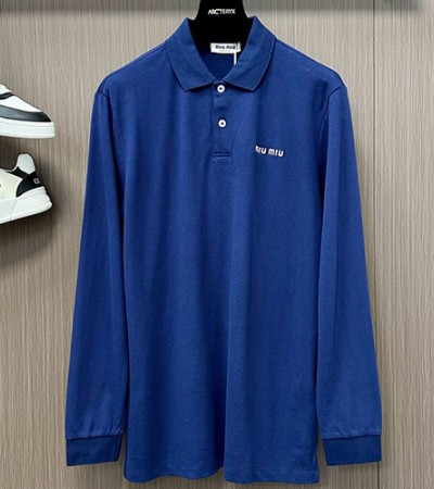 [홍콩명품,MIU MIU] 미우미우 24SS 로고 자수 카라 폴로 긴팔 티셔츠 (2컬러), BM16930, JU, 홍콩명품의류,구매대행,온라인명품 > 남자의류