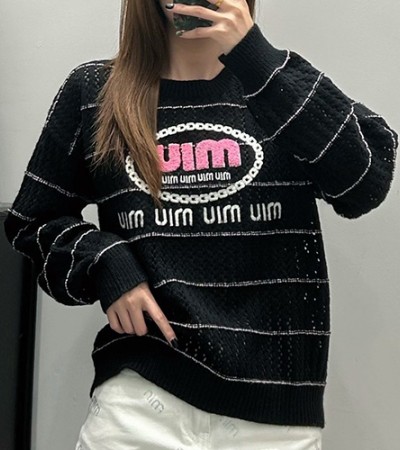 • [홍콩명품,MIU MIU] 미우미우 24SS 로고 자수 여성 스트라이프 니트 스웨터 (2컬러), BM16967, TBG, 홍콩명품의류,구매대행,온라인명품