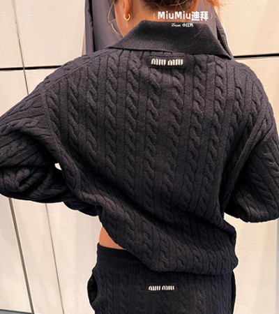 • [홍콩명품,MIU MIU] 미우미우 24SS 로고 여성 카라 니트 스웨터 (블랙), BM16989, TBG, 홍콩명품의류,구매대행,온라인명품