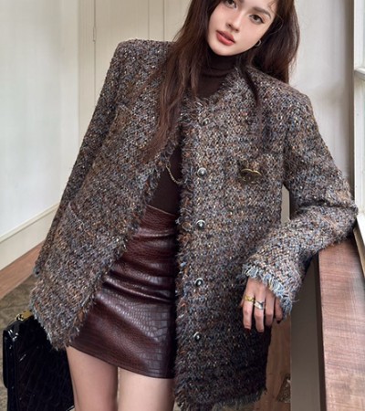 • [홍콩명품.CHANEL] 샤넬 24SS 로고 브로치 여성 라운드넥 트위드 자켓 (브라운), BM17102, TBG, 홍콩명품의류,구매대행,온라인명품