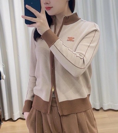 • [홍콩명품.CELINE] 셀린느 24SS 로고 여성 터틀넥 지퍼 니트 가디건 자켓 (2컬러), BM17104, TBG, 홍콩명품의류,구매대행,온라인명품