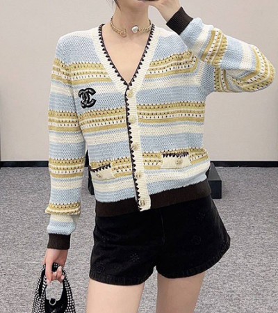 [홍콩명품.CHANEL] 샤넬 24SS 로고 패턴 여성 V넥 니트 가디건, BM17108, TBG, 홍콩명품의류,구매대행,온라인명품 > 여성몰