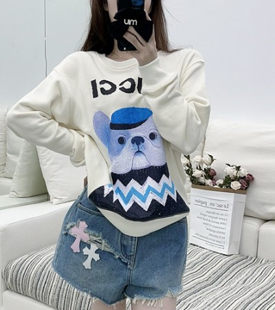 • [홍콩명품.Gucci] 구찌 24SS 로고 여성 그래픽 니트 스웨터 (화이트), BM17211, TBG, 홍콩명품의류,구매대행,온라인명품
