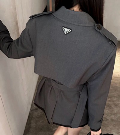 [홍콩명품,PRADA] 프라다 24SS 삼각로고 여성 미디 코트 자켓 (그레이), BM17359, TBG, 홍콩명품의류,구매대행,온라인명품 > 여성몰