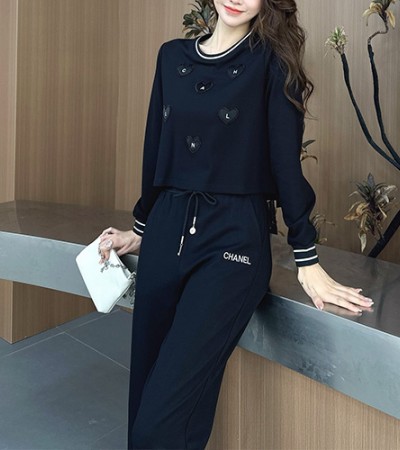 • [홍콩명품.CHANEL] 샤넬 24SS 로고 여성 트레이닝 티셔츠 + 조거 팬츠 바지 상하의 세트 (블랙), BM17371, TBG, 홍콩명품의류,구매대행,온라인명품