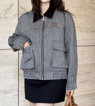 [홍콩명품,MIU MIU] 미우미우 24SS 로고 자수 여성 울 카라 봄버 자켓 (그레이), BM17380, TBG, 홍콩명품의류,구매대행,온라인명품 > 여성몰