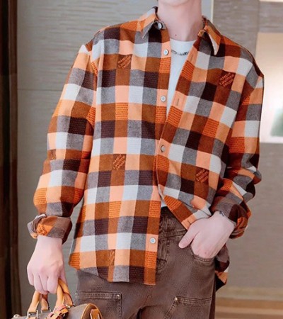 • [홍콩명품.LOUIS VUITTON] 루이비통 25SS 로고 다미에 울 남방 셔츠 (오렌지), BM20001, S1F, 홍콩명품의류,구매대행,온라인명품