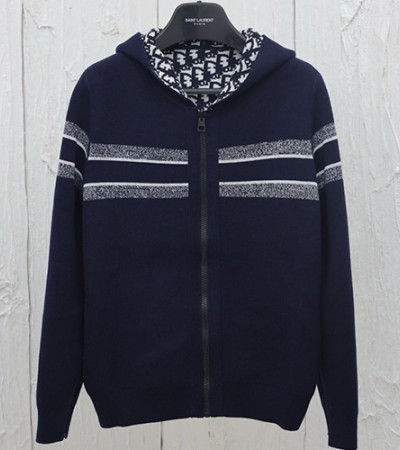 • [홍콩명품,Christian Dior] 디올 24SS 로고 오블리크 리버서블 니트 후드 집업 자켓 (네이비), BM17646, KB, 홍콩명품의류,구매대행,온라인명품