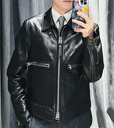 • [홍콩명품.Tom Ford] 톰포드 24SS 로고 카라 레더 가죽 자켓 (블랙), BM17656, PG, 홍콩명품의류,구매대행,온라인명품