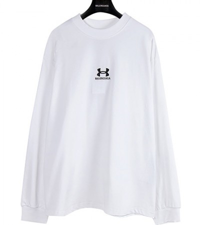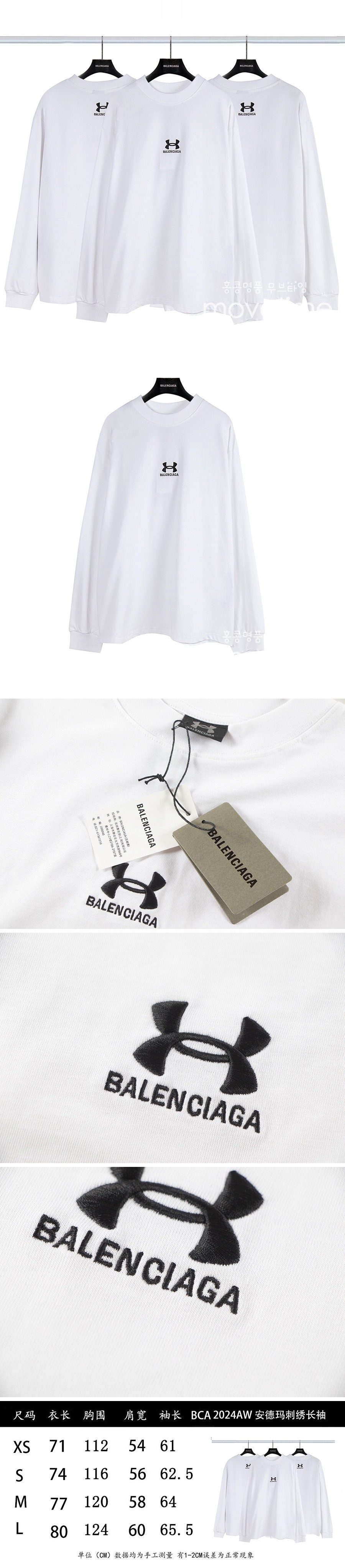 [홍콩명품.BALENCIAGA] 발렌시아가 24SS 로고 자수 언더아머 콜로보 긴팔 티셔츠 (화이트), BM17699, JU, 홍콩명품의류,구매대행,온라인명품 요약정보 및 구매