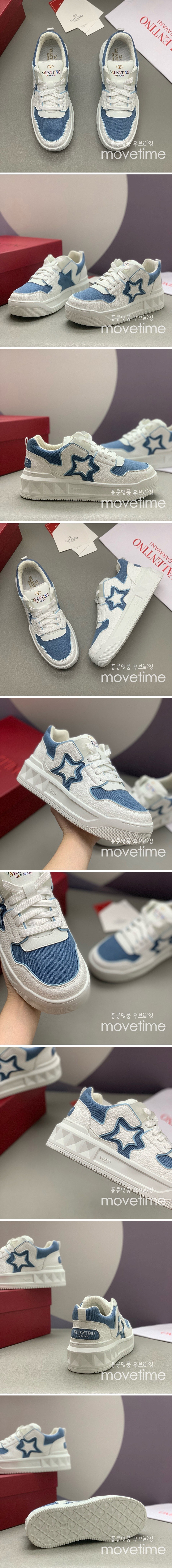 • [홍콩명품.Valentino] 발렌티노 24SS 로고 남여 레더 가죽 스니커즈 운동화 (화이트-블루), SE4366, PMD, 명품스니커즈,운동화,구두,로퍼,하이탑,신발