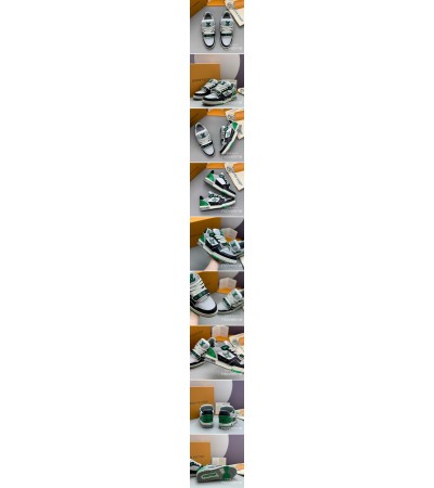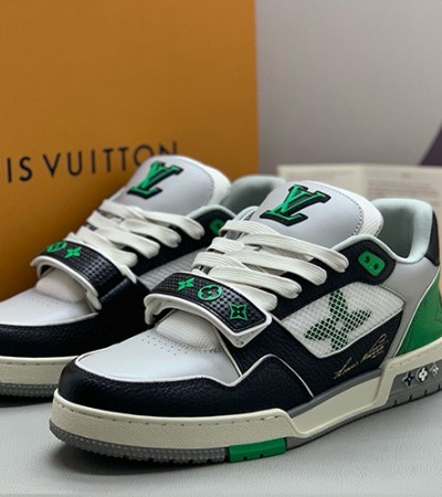 • [홍콩명품.LOUIS VUITTON] 루이비통 24SS 로고 모노그램 트레이너 스니커즈 운동화 (블랙-화이트-그린), SE4375, PMD, 명품스니커즈,운동화,구두,로퍼,하이탑,신발