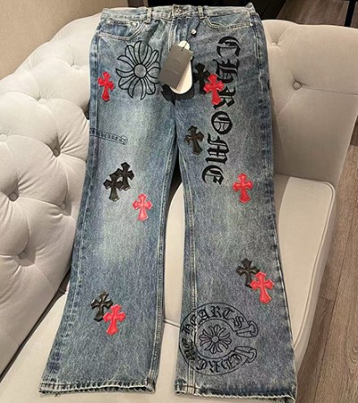 • [홍콩명품.Chrome Hearts] 크롬하츠 25SS 로고 오버핏 데님 팬츠 진 청바지, BM18122, JU, 홍콩명품의류,구매대행,온라인명품