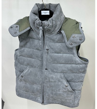 [홍콩명품.Tom Ford] 톰포드 25SS 로고 레더 가죽 후드 다운 패딩 조끼 베스트 (그레이), BM18162, TOM, 홍콩명품의류,구매대행,온라인명품 > 남자의류