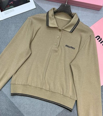 • [홍콩명품,MIU MIU] 미우미우 25SS 로고 자수 여성 폴로 긴팔 티셔츠 (3컬러), BM18412, TBG, 홍콩명품의류,구매대행,온라인명품