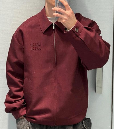 [홍콩명품,MIU MIU] 미우미우 25SS 로고 카라 봄버 자켓 (와인), BM18541, KB, 홍콩명품의류,구매대행,온라인명품 > 남자의류