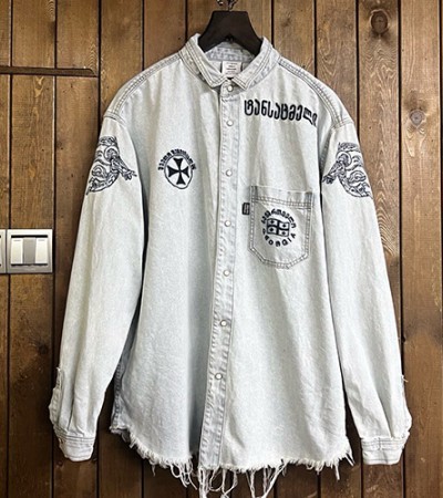 [홍콩명품.VETEMENTS] 베트멍 25SS 로고 워싱 빈티지 데님 남방 셔츠 (연청), BM18554, ROSSO, 홍콩명품의류,구매대행,온라인명품 요약정보 및 구매