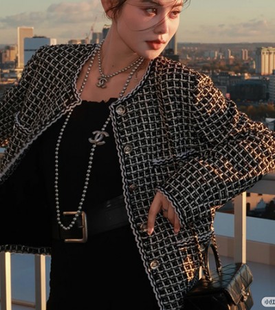 • [홍콩명품.CHANEL] 샤넬 25SS 로고 여성 라운드넥 트위드 자켓 (블랙), BM18608, PG, 홍콩명품의류,구매대행,온라인명품