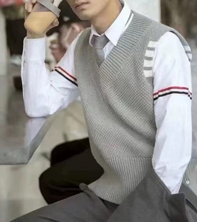 [홍콩명품.THOME BROWNE] 톰브라운 25SS 로고 4바 V넥 니트 탑 (2컬러), BM18653, TB1, 홍콩명품의류,구매대행,온라인명품 > 남자의류