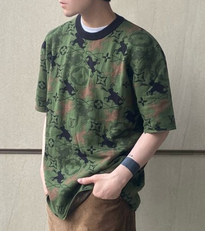 [홍콩명품.LOUIS VUITTON] 루이비통 25SS 로고 모노그램 니트 반팔 티셔츠 (카키), BM18714, JU, 홍콩명품의류,구매대행,온라인명품 > 남자의류