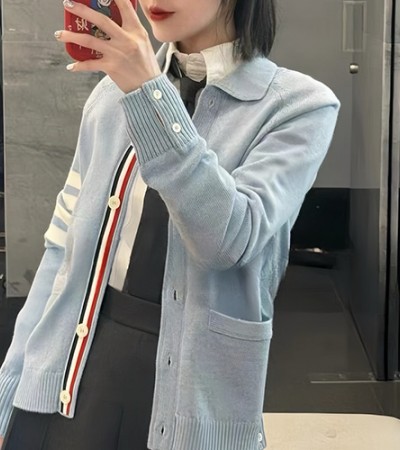 [홍콩명품.THOME BROWNE] 톰브라운 25SS 로고 여성 4바 카라 니트 가디건 (스카이블루), BM18872, TB1, 홍콩명품의류,구매대행,온라인명품 > 여성몰