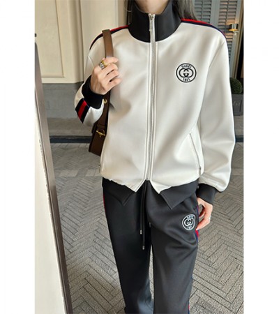 • [홍콩명품.Gucci] 구찌 25SS 로고 여성 트레이닝 집업 자켓 + 팬츠 바지 상하의 세트 (화이트-블랙), BM19189, TBG, 홍콩명품의류,구매대행,온라인명품