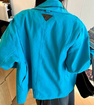 • [홍콩명품,PRADA] 프라다 25SS 삼각로고 여성 오버핏 데님 정장 자켓 (블루), BM19294, TBG, 홍콩명품의류,구매대행,온라인명품