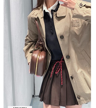 • [홍콩명품,MIU MIU] 미우미우 25SS 로고 여성 체크패턴 데님 봄버 자켓 (베이지), BM19369, TBG, 홍콩명품의류,구매대행,온라인명품