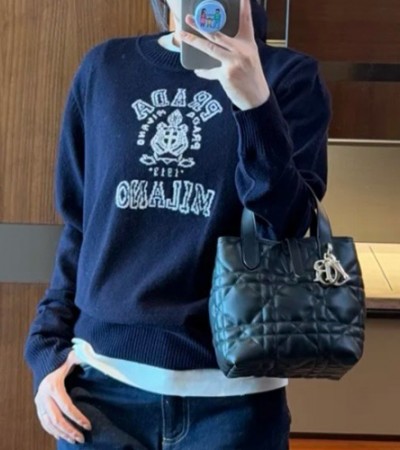 • [홍콩명품,PRADA] 프라다 25SS 로고 여성 니트 반팔 티셔츠 (블랙), BM19601, 13C, 홍콩명품의류,구매대행,온라인명품