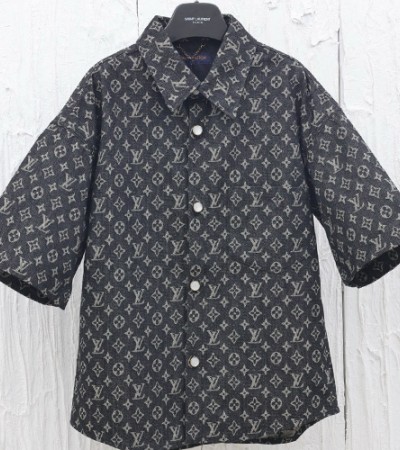 • [홍콩명품.LOUIS VUITTON] 루이비통 25SS 로고 모노그램 데님 반팔 남방 셔츠 + 데님 쇼츠 반바지 상하의 세트 (블랙), BM19632, KB, 홍콩명품의류,구매대행,온라인명품