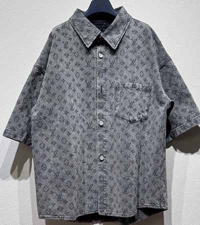 • [홍콩명품.LOUIS VUITTON] 루이비통 25SS 로고 모노그램 데님 반팔 남방 셔츠 + 데님 쇼츠 반바지 상하의 세트 (그레이), BM19634, KB, 홍콩명품의류,구매대행,온라인명품
