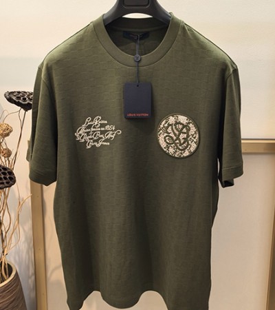 • [홍콩명품.LOUIS VUITTON] 루이비통 25SS 로고 Snakoflage LV Cursive 반팔 티셔츠 (카키), BM19670, YS, 홍콩명품의류,구매대행,온라인명품