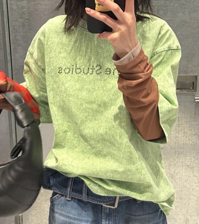 [홍콩명품.ACNE STUDIOS] 아크네 25SS 로고 여성 스터드 장식 반팔 티셔츠 (그린), BM19723, TBG, 홍콩명품의류,구매대행,온라인명품 > 여성몰