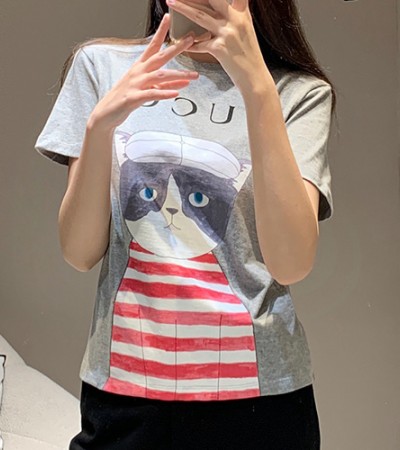 • [홍콩명품.Gucci] 구찌 25SS 로고 여성 그래픽 프린트 반팔 티셔츠 (그레이), BM19730, TBG, 홍콩명품의류,구매대행,온라인명품