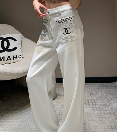 • [홍콩명품.CHANEL] 샤넬 25SS 로고 여성 오버핏 데님 팬츠 진 청바지 (화이트), BM19748, TBG, 홍콩명품의류,구매대행,온라인명품