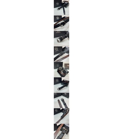 • [홍콩명품.Chrome Hearts] 크롬하츠 25SS 로고 925실버 버클 레더 가죽 벨트, 3.4cm, BT1414, BRB, 명품레플리카,인터넷쇼핑몰,남자명품,해외직구