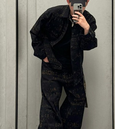 • [홍콩명품.BALENCIAGA] 발렌시아가 25SS 로고 프린트 데님 카라 자켓 + 오버핏 데님 팬츠 진 청바지 상하의 세트 (네이비), BM19892, JL, 홍콩명품의류,구매대행,온라인명품