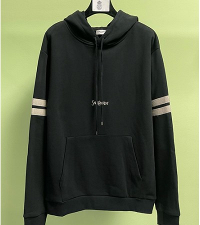 • [홍콩명품.YSL] 입생로랑 25SS 로고 자수 후드 티셔츠 (블랙), BM19899, JL, 홍콩명품의류,구매대행,온라인명품