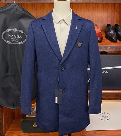 [홍콩명품,PRADA] 프라다 25SS 로고 브로치 캐시미어 울 코트 자켓 (블루), BM19937, S1F, 홍콩명품의류,구매대행,온라인명품 > 남자의류