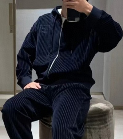 • [홍콩명품,FENDI] 펜디 25SS 로고 자수 코드류이 골덴 후드 집업 자켓 + 조거 팬츠 바지 상하의 세트 (네이비), BM20047, JL, 홍콩명품의류,구매대행,온라인명품