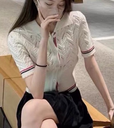 [홍콩명품.THOME BROWNE] 톰브라운 25SS 로고 여성 3선 카라 오픈 니트 반팔 티셔츠 (2컬러), BM20212, TB1, 홍콩명품의류,구매대행,온라인명품 요약정보 및 구매