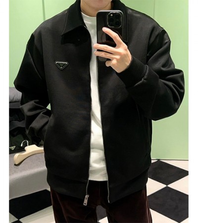 [홍콩명품,PRADA] 프라다 25SS 삼각로고 카라 봄버 자켓 (블랙), BM20227, JL, 홍콩명품의류,구매대행,온라인명품 요약정보 및 구매