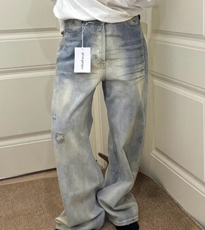 • [홍콩명품.ACNE STUDIO] 아크네스튜디오 25SS 로고 워싱 오버핏 데님 팬츠 진 청바지 (연청), BM20246, KB, 홍콩명품의류,구매대행,온라인명품