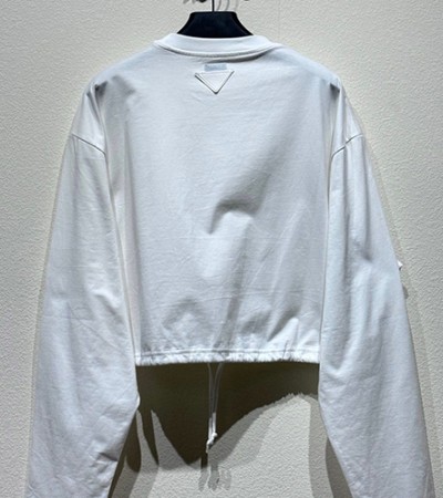 • [홍콩명품,PRADA] 프라다 25SS 삼각로고 여성 쇼트 긴팔 티셔츠 (화이트), BM20287, KB, 홍콩명품의류,구매대행,온라인명품
