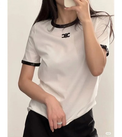 [홍콩명품.CELINE] 셀린느 25SS 로고 자수 여성 슬림핏 반팔 티셔츠 (2컬러), BM20288, KB, 홍콩명품의류,구매대행,온라인명품 > 여성몰
