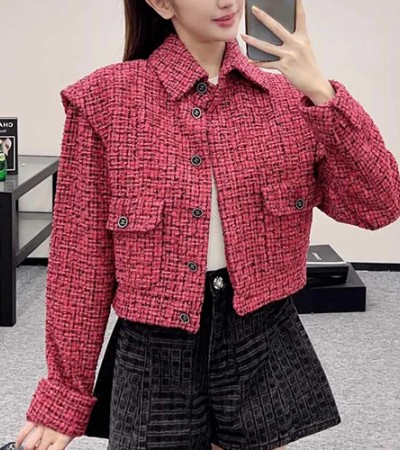 • [홍콩명품.CHANEL] 샤넬 25SS 로고 여성 카라 트위드 자켓 (레드), BM20293, SS, 홍콩명품의류,구매대행,온라인명품