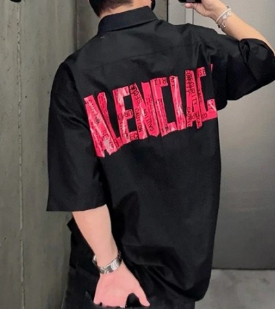 • [홍콩명품.BALENCIAGA] 발렌시아가 25SS 로고 테이핑 반팔 남방 셔츠 (블랙), BM20336, JL, 홍콩명품의류,구매대행,온라인명품