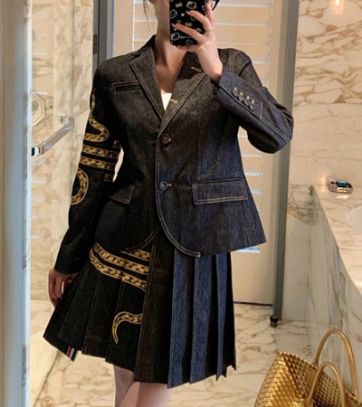 • [홍콩명품.THOME BROWNE] 톰브라운 25SS 로고 여성 4바 데님 자켓 + 미니 스커트 상하의 세트, BM20366, TBG, 홍콩명품의류,구매대행,온라인명품