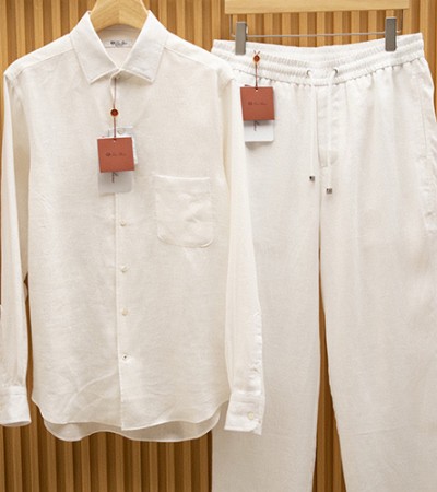 • [홍콩명품.Loro Piana] 로로피아나 25SS 로고 린넨 남방 셔츠 + 팬츠 바지 상하의 세트 (화이트), BM20502, B&G, 홍콩명품의류,구매대행,온라인명품