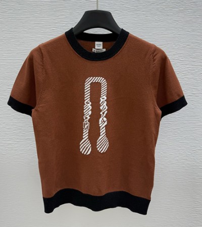 • [홍콩명품.Hermes] 에르메스 25SS 로고 여성 니트 반팔 티셔츠 (3컬러), BM20597, GBG, 홍콩명품의류,구매대행,온라인명품
